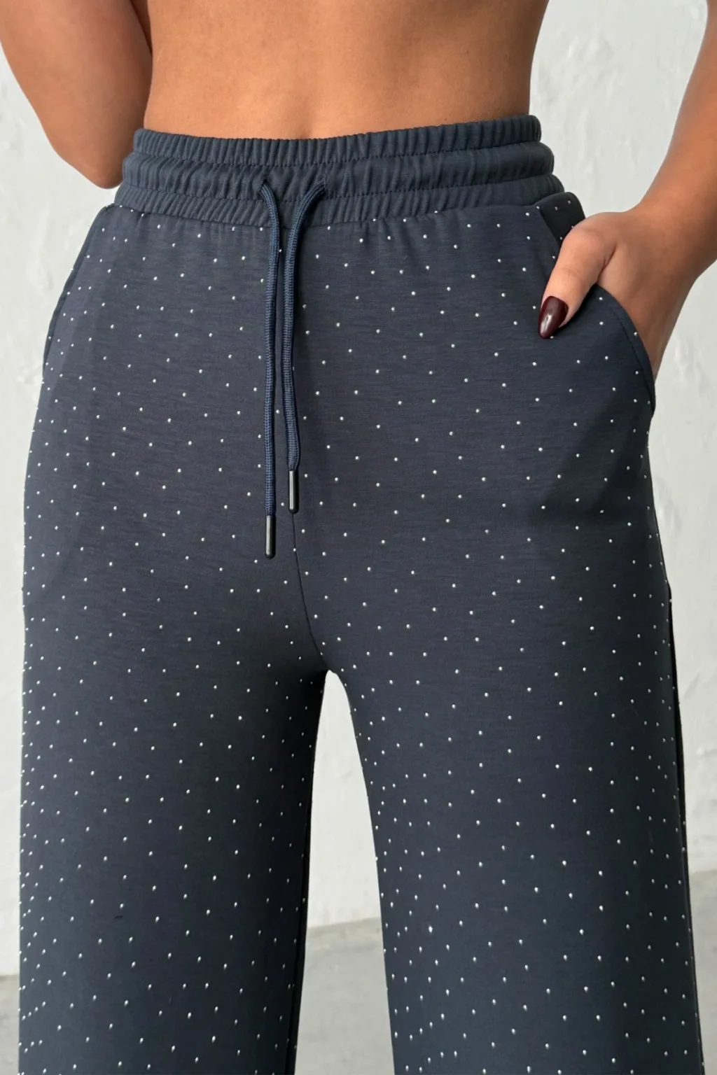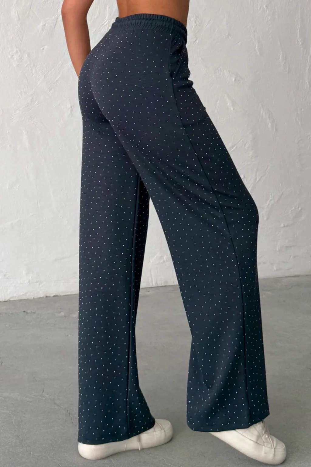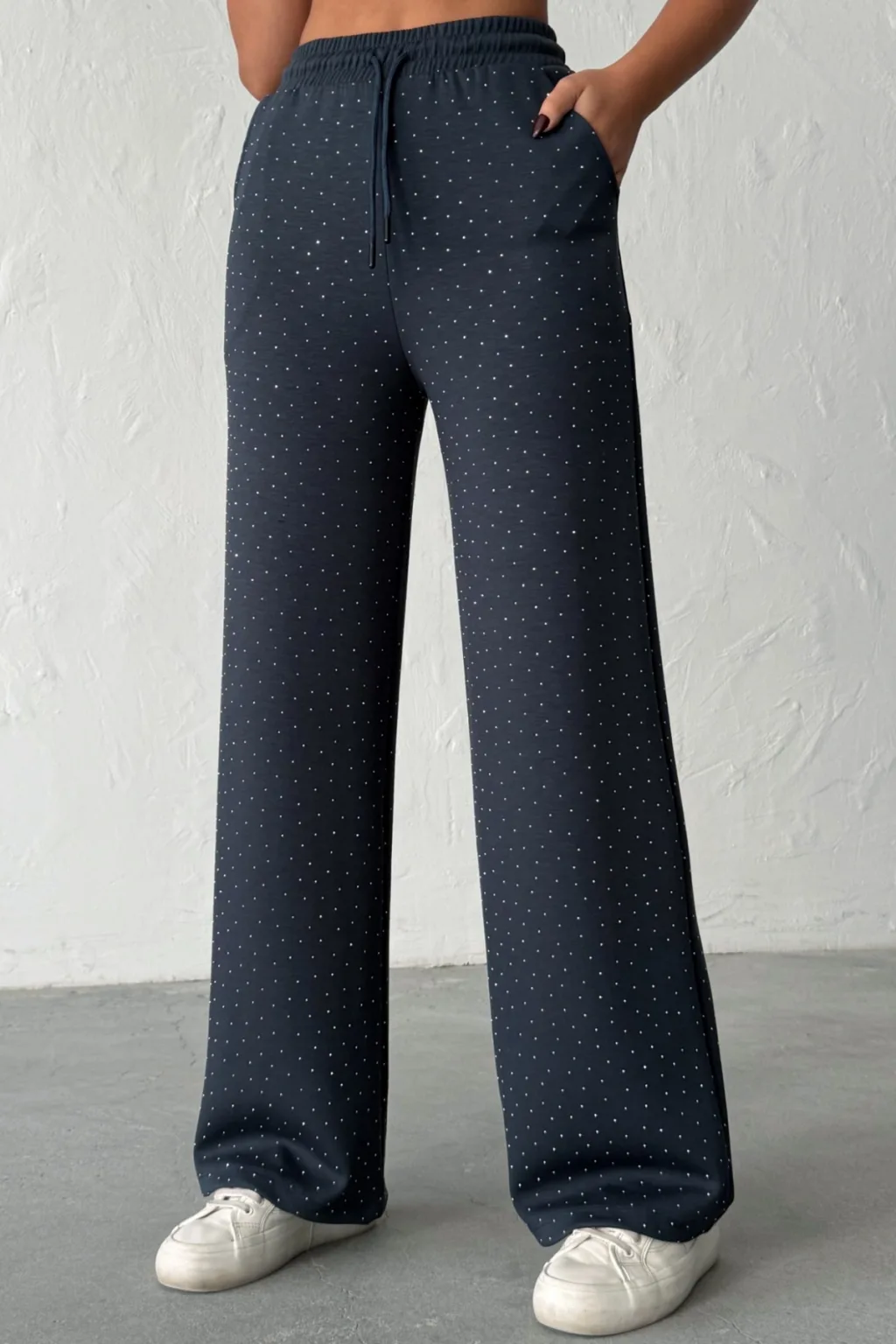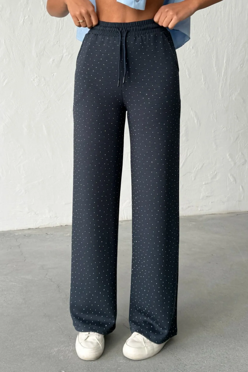 MODAL KUMAŞ, TAŞ BASKILI, YÜKSEK BEL, BELİ KORDONLU, GENİŞ PAÇA, RAHAT