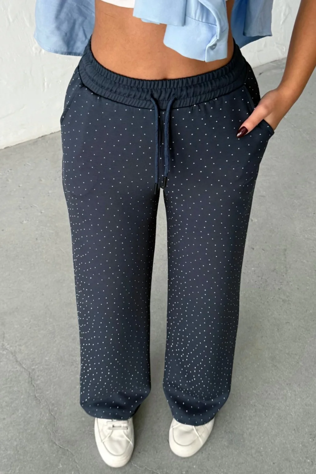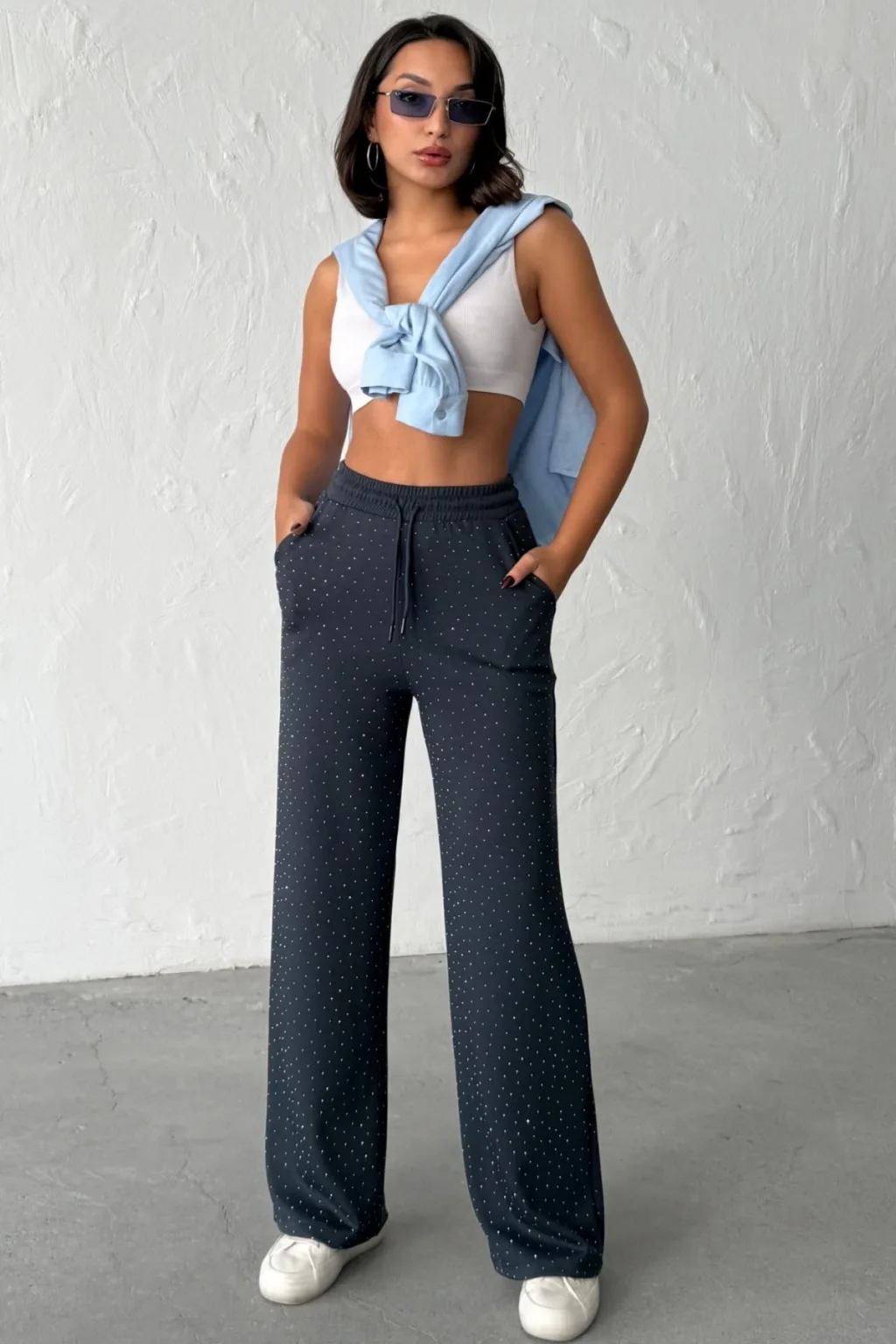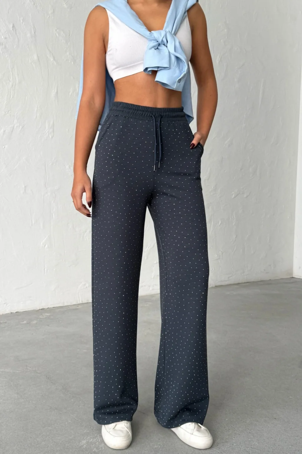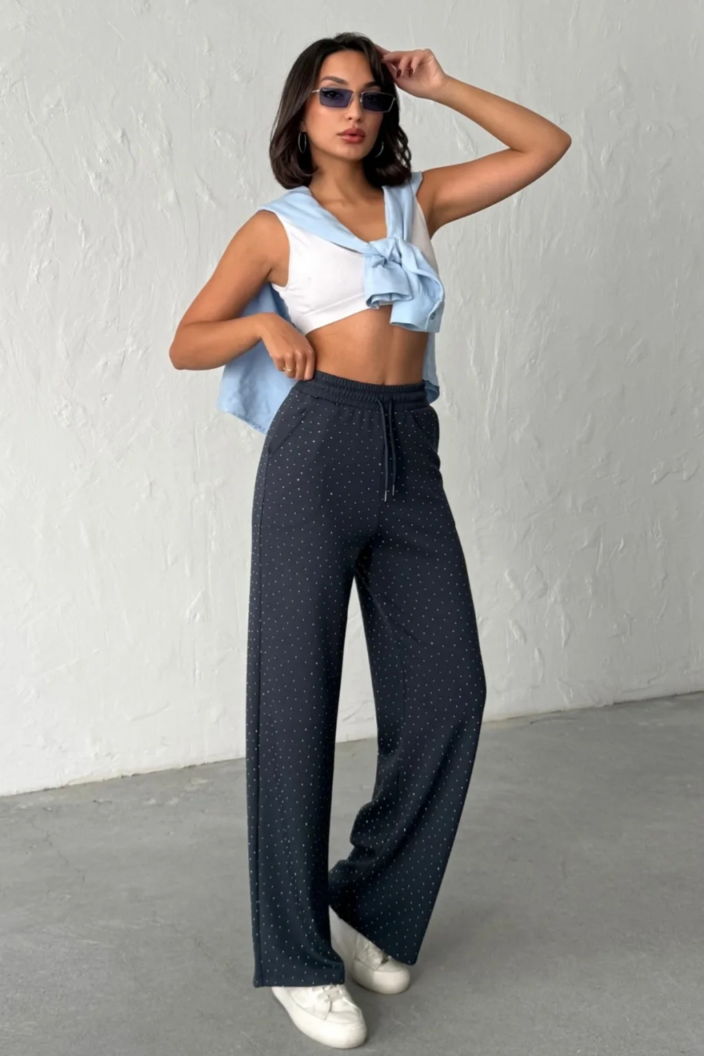 MODAL KUMAŞ, TAŞ BASKILI, YÜKSEK BEL, BELİ KORDONLU, GENİŞ PAÇA, RAHAT